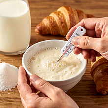 Heat about 50 ml of milk to a temperature of 35–37°C: it should feel warm to the touch, not hot. Crumble the fresh yeast into a small bowl, add 10 g of sugar (from the given amount) and pour in the warm milk. Mix with a small spoon until the yeast dissolves. Set aside in a warm place for 8–10 minutes; a foam (fluffy 'cap') should appear on the surface, indicating that the yeast is active.