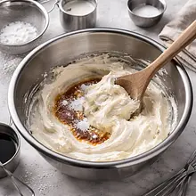 Use a spatula or a large spoon, gently mix to ensure the mascarpone doesn't become watery. The mixture should be smooth and slightly thick; if it's too runny, chill it in the fridge for 10-15 minutes, the agar should start to set.