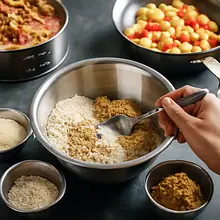 Transfer the chopped fruit to a bowl. Add 50 g of white sugar (measured from the total amount) and 15 g of cornstarch (measured from the specified amount). Gently mix to coat the fruit evenly. Set aside for 20–30 minutes, stirring occasionally — the sugar will cause the fruit to release juice, and the cornstarch will start to slightly thicken it.
