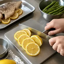 Slice the second lemon into 6 thin slices (about 100 g — you will use them for baking). Transfer the fillets to a large bowl or plate and evenly coat with the marinade on both sides: first place the fillet skin-side down (if it has skin), pour the marinade over the surface with a spoon, and spread it with your hand or a brush. Let the fillets rest for 15–20 minutes in a cool place (not in the fridge, if the fish was cold — a short rest is enough).