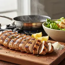 Klasyczna sałatka Cezar to kwintesencja elegancji i prostoty, idealna na sylwestrową kolację. Jej historia sięga lat 20. XX wieku i meksykańskiej Tijuany, gdzie włoski restaurator Caesar Cardini stworzył ją z dostępnych pod ręką składników. Nasza wersja wzbogacona jest o soczystego, grillowanego kurczaka, co czyni ją pełnoprawnym daniem. Sekret tkwi w idealnym balansie smaków: chrupkości świeżej sałaty rzymskiej, intensywności domowych, czosnkowych grzanek, słoności parmezanu i kremowego, lekko pikantnego sosu z nutą anchois. To danie, które zachwyca nie tylko smakiem, ale i wyglądem – kontrast zieleni, złocistych grzanek i białego sera tworzy apetyczną kompozycję. Podawaj ją jako elegancką przystawkę lub lekkie danie główne, które z pewnością zaimponuje gościom.