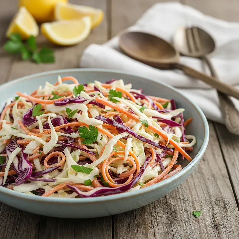 Przygotuj białą kapustę. Zdejmij zewnętrzne, ewentualnie zwiędnięte lub uszkodzone liście i wyrzuć je. Połóż kapustę na desce do krojenia i przetnij ją na pół, a następnie każdą połówkę na kolejne dwie części, uzyskując cztery ćwiartki. Z każdej ćwiartki wytnij twardy, zdrewniały głąb. Następnie każdą ćwiartkę poszatkuj bardzo cienko ostrym nożem na długie, delikatne paski. Celem jest uzyskanie jak najcieńszych wiórków. Przełóż poszatkowaną kapustę do bardzo dużej miski.