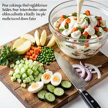 Wash all the vegetables: potato, carrot, parsley root, celery. Peel them with a vegetable peeler, dry with a paper towel. Cut into similarly sized pieces of about 3-4 cm (this will speed up and even out the cooking time). Place the vegetables in a large pot and cover with cold water so that they are submerged by about 2 fingers. Add 1/2 teaspoon of salt (about 2-3 g).
