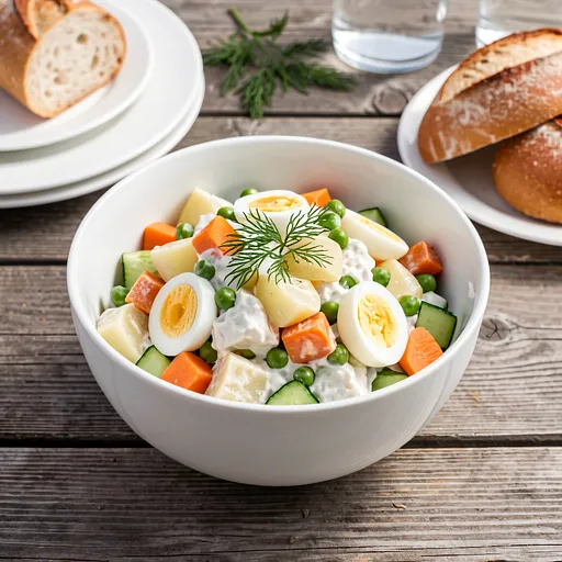 Vegetable salad, known in Poland as "sałatka warzywna" or "jarzynowa," has its roots in 19th-century European cuisine. The version with mayonnaise became popular after World War II and has since accompanied many holidays and picnics.