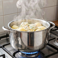 Place the potatoes in a large pot, cover with cold water so that the water is 2 cm above the vegetables. Add 1 teaspoon of salt (about 2 g). Bring to a boil over high heat, then reduce the heat and cook for 15-20 minutes, until the potatoes are tender (check with a fork — it should easily pierce through). Remove the potatoes and set aside to cool.