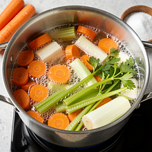 In a separate pot, add the carrot, parsley, and celery, cover with cold water, and bring to a boil. Cook for 10-15 minutes (depending on the size of the pieces) until the vegetables are tender but not falling apart — check with a fork: it should go in easily.