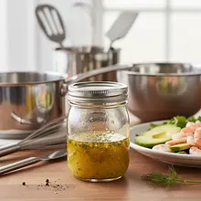 Przygotuj sos winegret. W małym słoiczku z zakrętką umieść 3 łyżki oliwy z oliwek, resztę soku z limonki (około 2-3 łyżek), płynny miód oraz musztardę Dijon. Dodaj szczyptę soli i pieprzu. Zakręć słoiczek i energicznie nim potrząsaj przez około 20-30 sekund, aż składniki połączą się w jednolitą, lekko mętną emulsję.