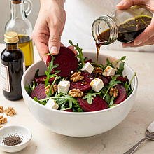 Wash the beets under running water with a vegetable brush, cut off the leaves close to the stem (they can be saved for another use). Dry the beets with a paper towel. Preheat the oven to 200°C. Wrap each beet individually in aluminum foil or place them in a covered baking dish. Bake for 45-60 minutes (depending on size) until tender — check by piercing the beet with a knife: the knife should slide in smoothly without resistance.