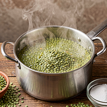 Rinse the lentils with cold water in a ratio of about 1 part lentils to 3 parts water (about 600 ml). Add a very small pinch of salt (1 g) only at the end of cooking. Bring to a boil over high heat, then reduce the heat to medium-low and cook with the lid slightly ajar for 18–22 minutes. Check the lentils starting at 16 minutes: the grains should be soft but hold their shape (they should not fall apart).