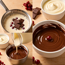 In a water bath (a bowl over a pot of gently boiling water), melt 120 g of chocolate, stirring until smooth. Remove the bowl from the heat and set aside to cool slightly (about 5 minutes).