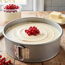 Place in the preheated oven and bake in a water bath for 45-50 minutes at 160°C. The cake is ready when the edges are set and slightly firmer, while the center still gently wobbles (it should not be liquid).