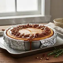 The combination of cheesecake and pecan pie is a tribute to American cuisine. Cheesecake, although popularized in New York, has roots in ancient Greece, where it was served to athletes during the Olympic Games. On the other hand, Pecan Pie is a symbol of Southern hospitality in the USA, and its popularity grew in the early 20th century thanks to Karo, which promoted its corn syrup as a key ingredient in the filling.