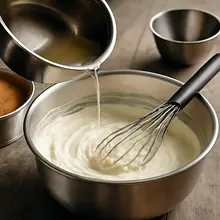 Whip the cream: pour 300 ml of chilled 30% cream into a clean, cold bowl and whip on medium speed with a mixer until stiff but smooth peaks form (3–4 minutes). Stop whipping when the cream holds its shape and doesn't drip from the whisk.