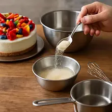 Temper the gelatin: slowly pour the warm gelatin into the cheese mixture in a thin stream while mixing on low speed. First, pour 2–3 tablespoons of gelatin into 2 tablespoons of cheese mixture in a separate bowl and mix (tempering), then pour this mixture back into the main mixture and mix thoroughly. This will prevent the gelatin from forming lumps.