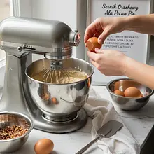 Reduce the mixer speed to the minimum. Add the eggs one by one, waiting for the previous one to fully incorporate into the mixture. After adding the last egg, mix for just a moment until a smooth consistency is achieved.