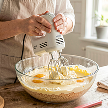 Pour 200 g of cream into the cheese mixture and add 1 g of salt and 5 g of baking powder. If using, add lemon zest. Mix on low speed or gently with a spatula until the ingredients are combined — the mixture should be smooth and slightly runny, without lumps.