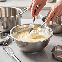 Use a bowl with a diameter of 20 cm and a fork or a small hand blender if you want a very smooth consistency. Don't add too much yogurt at the beginning — it's better to add it gradually.