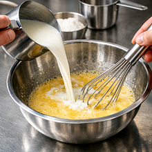Prepare the ingredients and utensils: a large bowl (at least 2 l), a whisk or mixer, a measuring cup. Sift 250 g of wheat flour into the large bowl, making a small well in the flour. In a separate container, crack 120 g of eggs (2 pieces) and beat them with a fork until smooth. Add 20 g of sugar and 2 g of salt to the eggs, and mix.