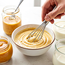 A delicate, slightly spicy mustard sauce with honey combines Polish simplicity with a modern twist. The base is mustard and Polish honey, balanced with creamy 18% sour cream and fresh lemon, creating a harmony of sweetness, acidity, and spiciness. The sauce pairs wonderfully as a dip for young spring vegetables (asparagus, carrots, radishes), with roasted potatoes, cold cuts, or sandwiches with roasted poultry. With a quick preparation time (about 5 minutes) and simple ingredients available in Poland, the sauce is perfect for quick snacks, garden parties, and picnics. Visually, it has a creamy, smooth consistency with a golden hue and tiny mustard seeds; it can be served in a small bowl, garnished with dill and freshly ground pepper.