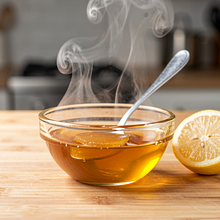 In a small bowl, mix 40 g of honey with 20 ml of lemon juice. If the honey is thick, heat the mixture in a water bath for 20–30 seconds until it liquefies, then whisk vigorously with a fork until a smooth, runny glaze forms.