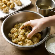 Prepare the marinade: peel and finely chop 2 cloves of garlic (10 g). In a small bowl, mix 30 g of olive oil, 30 ml of lemon juice (about 30 g), 4 g of dried oregano, 4 g of salt (part for the marinade), 1 g of pepper (1 pinch), and the crushed garlic. Mix with a fork or whisk to combine the ingredients — an emulsion with a uniform, slightly oily consistency will form.