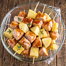 Skewers have a long history in Eastern and Mediterranean cuisines; in Poland, they traditionally take the form of simple grilled snacks. The combination of chicken and pineapple emerged as a result of culinary exchange of flavors and gained popularity due to the sweet-sour contrast.