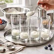 Serve in clear cups or glasses to showcase the layers. Serve warm apple slices on cool yogurt for a contrast in temperature. Additionally, you can serve a small scoop of vanilla ice cream on the side for a more dessert-like touch.