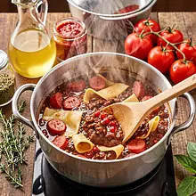 Ragù originates from northern Italy, traditionally from the Emilia-Romagna region (famous ragù alla bolognese). The Polish version with sausage and rhubarb combines the Italian braising technique with local, seasonal flavors.