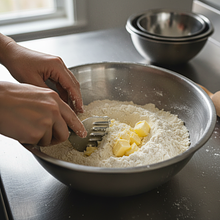 You can use a pastry cutter or a food processor (pulse option, a few short bursts). The key is speed and keeping the ingredients at a low temperature. Do not blend the butter until smooth – small pieces of butter in the dough will make it flaky and crisp.