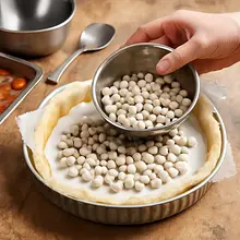 Line the bottom of the pan with parchment paper and add weights (special ceramic balls or dry beans/rice). Bake 'blind' for 15 minutes at 200°C, until the edges start to brown slightly. Remove from the oven, carefully take out the paper with the weights, and bake for another 8–10 minutes until the bottom is dry and lightly golden.