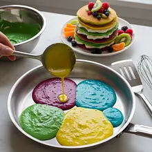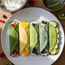 Here’s a recipe that will turn any picky eater into a true gourmet! Rainbow Spinach Pancakes are not only delicious but also incredibly visually appealing, making them perfect for lunch, breakfast, or a snack for kids. The delicate, slightly sweet pancake batter gains a beautiful, vibrant green color thanks to the addition of fresh spinach, whose taste is practically undetectable. It’s a clever way to sneak in a serving of vegetables into a child's diet. The filling hides fluffy stuffing made from semi-fat cottage cheese, natural yogurt, and a bit of honey, providing valuable protein and calcium. However, the real magic is the 'rainbow' made up of juicy, fresh fruits – strawberries, kiwi, blueberries, and mandarins. The dish is not only a feast for the eyes but also a balanced meal, rich in vitamins, fiber, and energy needed for play throughout the day. Served as colorful triangles or rolls, they are sure to bring a smile to every child's face.