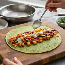 In a large bowl, place the all-purpose flour. Make a small well in the center, resembling a volcano crater. Crack two eggs into this well. Pour in half of the milk (150 ml) and add 3 pinches of salt. Take a whisk and start mixing the ingredients, moving from the center outwards. Gradually incorporate the flour from the edges of the 'crater' into the liquid ingredients. Once you achieve a thick, smooth batter without lumps, begin to add the remaining milk (150 ml) and sparkling water (200 ml), continuously mixing until the batter is uniform and runny. Finally, pour in 2 tablespoons of rapeseed oil (30g) and stir briefly once more. Let the batter rest for 15-20 minutes to allow the gluten in the flour to swell, making the pancakes more elastic.