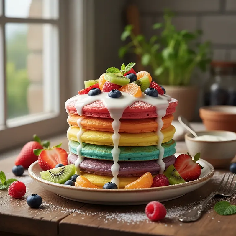 Tęczowe Placuszki Jogurtowe to magiczny sposób na rozpoczęcie dnia, który zachwyci każde dziecko i niejednego dorosłego. To nie tylko pyszne, ale i niezwykle atrakcyjne wizualnie śniadanie, które zamienia poranny posiłek w kreatywną zabawę. Dzięki dodatkowi jogurtu naturalnego placuszki są niezwykle puszyste, delikatne i wilgotne w środku, a także bogatsze w białko i wapń. Kolory uzyskujemy dzięki naturalnym barwnikom spożywczym, co pozwala na stworzenie na talerzu prawdziwej tęczy. Podane ze świeżymi, sezonowymi owocami i odrobiną syropu klonowego, stanowią pełnowartościowy i zbilansowany posiłek. To idealna propozycja na weekendowe, niespieszne śniadanie, urodziny dziecka lub po prostu na poprawę humoru w pochmurny dzień. Przygotowanie ich to także świetna okazja do wspólnego gotowania z dziećmi, które z pewnością chętnie pomogą w mieszaniu kolorowych ciast.