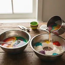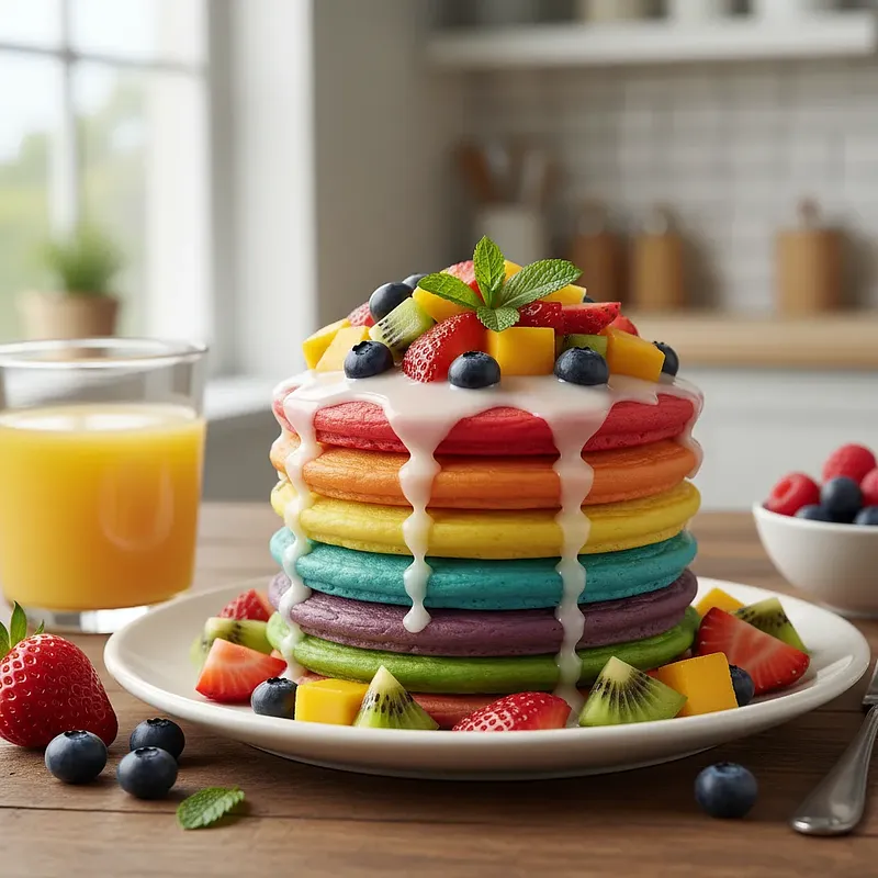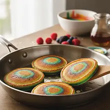 Tęczowe Placuszki z Owocami to magiczny sposób na rozpoczęcie dnia, który zachwyci każde dziecko (i niejednego dorosłego!). Są to małe, puszyste placuszki w stylu amerykańskich pancakes, które swój niezwykły, bajkowy wygląd zawdzięczają wyłącznie naturalnym barwnikom pochodzącym z warzyw i owoców. Zamiast sztucznych dodatków, używamy tu szpinaku dla zieleni, malin dla różu i kurkumy dla słonecznej żółci. Dzięki temu śniadanie jest nie tylko piękne i apetyczne, ale również przemyca porcję witamin. Placuszki są delikatne w smaku, lekko słodkie i cudownie miękkie. Podane z gęstym jogurtem naturalnym do maczania i świeżymi, sezonowymi owocami, tworzą pełnowartościowy i zbilansowany posiłek, który dostarcza energii na cały poranek pełen zabawy. To idealna propozycja na weekendowe, niespieszne śniadanie, przyjęcie urodzinowe czy Dzień Dziecka.