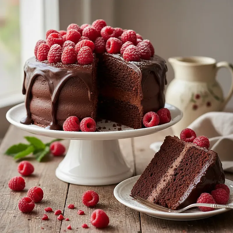 Elegancki i intensywnie czekoladowy tort z malinami to kwintesencja deserowej rozkoszy, idealna na wyjątkowe okazje, takie jak Sylwester. Składa się z wilgotnych, kakaowych blatów biszkoptowych, które dosłownie rozpływają się w ustach. Przełożony jest aksamitnym, bogatym ganaszem z gorzkiej czekolady, którego głęboki smak doskonale równoważy orzeźwiająca, lekko kwaskowata frużelina malinowa. Każdy kęs to harmonijne połączenie słodyczy, wytrawnego kakao i owocowej świeżości. Z wierzchu tort pokryty jest gładką warstwą tego samego ganaszu i udekorowany świeżymi, soczystymi malinami, które dodają mu nie tylko smaku, ale i spektakularnego wyglądu. To deser, który zachwyca zarówno smakiem, jak i estetyką, stanowiąc niezapomniany punkt kulminacyjny każdej uroczystości.