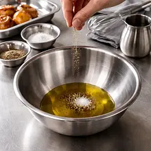 In a medium bowl, pour in 30 g of olive oil (extra), 30 g of red wine vinegar, 15 g of Dijon mustard, and 20 g of lemon juice. If you want a sweeter dressing, add 20 g of honey (optional). Whisk the ingredients vigorously with a whisk or fork for 30-45 seconds until the emulsion is smooth, slightly thick, and shiny. Season with 1 pinch of salt (1 g) and 1 pinch of pepper (1 g), taste, and adjust if necessary — more vinegar for acidity or honey for sweetness.