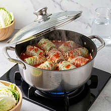 Prepare the head of cabbage: cut off the tough core at the base with a knife (about 1-2 cm) so that the leaves can be easily separated. In a large pot, bring 4-5 liters of water to a boil. When the water is boiling, place the cabbage in the pot and cook for 8-12 minutes — the outer leaves should become flexible and easy to remove. Remove the cabbage with tongs and set aside to cool.