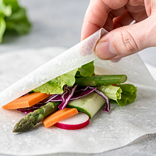 Rolling: fold the bottom edge of the paper over the filling, hold it with your fingers, then fold the sides inward and tightly, but gently, roll upwards until the end. The roll should be tight, but the paper must not be stretched to the point of tearing. Place the finished rolls on a board with the open edge facing down to prevent them from unrolling.