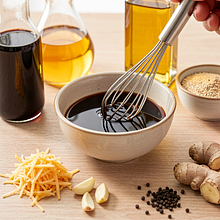 Prepare the dip: in a small bowl, mix soy sauce (60 ml) with honey (15 g), canola oil (15 g), grated ginger (10 g), and minced garlic (10 g). If you are using sesame oil, add 5 g (1 teaspoon) just for flavor. Season very sparingly with salt (2 g) and pepper (1 g). Mix until smooth - the honey should dissolve in the liquid.