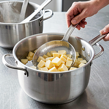 Place the chopped potatoes in a large pot, cover with cold water so that they are about 1 cm above the surface. Add 4 g of salt (from 10 g). Put the pot on high heat and bring to a boil. Cook for about 6-8 minutes from the moment it boils — the potatoes should be almost soft but not falling apart.