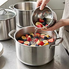 Place a pot over medium heat and bring the compote to a boil. Once it starts boiling, reduce the heat to low and simmer very gently for 20–25 minutes — small bubbles should appear, not a vigorous boil. While cooking, stir occasionally with a wooden spoon and skim off any foam with a slotted spoon if it forms.