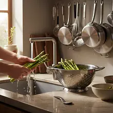 W szerokim garnku zagotuj wodę z dużą szczyptą soli. Wrzuć przygotowane szparagi do wrzątku i gotuj (blanszuj) przez 2-4 minuty, w zależności od ich grubości. Powinny być wciąż jędrne i intensywnie zielone (al dente). Odcedź je i natychmiast przelej zimną wodą, aby zatrzymać proces gotowania i zachować kolor. Alternatywnie, możesz posmarować szparagi oliwą i grillować na rozgrzanej patelni grillowej przez 4-5 minut.