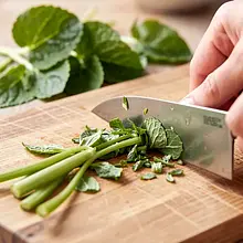Trim the thick stems of the sorrel with a knife (cut off the bottom 1-2 cm). Finely chop the leaves with a sharp knife on a cutting board, cutting 2-3 times in different directions to release the aroma. If you want a milder flavor, chop the sorrel very finely; for a more pronounced acidity, leave larger pieces.