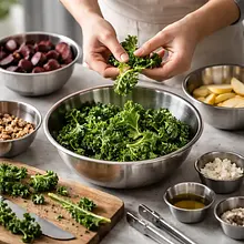 Faster method: if you have already roasted beets or they are in a vacuum bag, cut them right away. If not — wash the beets under running water, trim the ends (keep the leaves or cut them off if they are very large), wrap each beet individually in aluminum foil. Preheat the oven to 200°C (top-bottom). Place the wrapped beets on a baking sheet and bake for 35-40 minutes; small beets will be ready in about 30 minutes. Check with a skewer — it should slide smoothly into the center of the beet. After baking, cool for 10 minutes, remove the foil, and peel off the skin (it should come off easily with your fingers or a knife). Cut the beets into slices about 5 mm thick.