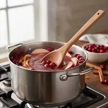 Po 15-20 minutach zdejmij garnek z ognia. Spróbuj ponczu za pomocą łyżki (uważaj, jest gorący!). Jeśli soki były wystarczająco słodkie, być może nie będzie potrzeby dodatkowego słodzenia. Jeśli jednak wolisz słodszy napój, teraz jest moment na dodanie miodu lub syropu klonowego. Zacznij od jednej łyżki, dokładnie wymieszaj aż się rozpuści, i ponownie spróbuj. Dodawaj stopniowo, aż osiągniesz idealny dla siebie balans między słodyczą a kwasowością.