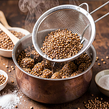Prepare the buckwheat: place the buckwheat in a sieve and rinse under cold water until the water runs clear. Place the buckwheat in a pot with a lid, add 320 ml of cold water (a 2:1 ratio of water to buckwheat), and add a pinch of salt. Bring to a boil over high heat, cover, and reduce the heat to the minimum. Cook for 12–15 minutes until the buckwheat absorbs the water and is tender but not overcooked. Let it sit covered for 5 minutes, then fluff with a fork.