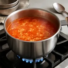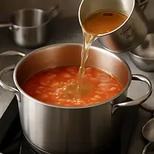 Bring the soup to a gentle boil, reduce the heat, and cook for 10-12 minutes to allow the flavors to meld and the tomatoes to soften. If you want a creamy soup, use an immersion blender and blend it smoothly directly in the pot: blend in short pulses until you reach the desired consistency.