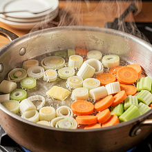 Add the chopped leeks, carrot, and celery to the pot. Sauté everything for 6-8 minutes over medium heat, stirring every minute, until the leeks soften (they should be tender and have a sweet aroma, not burnt).