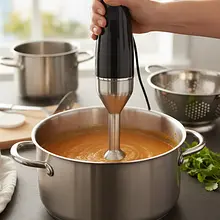 Zdejmij garnek z ognia. Użyj blendera ręcznego (żyrafy), aby zmiksować zupę na gładki, aksamitny krem. Blenduj ostrożnie, wykonując ruchy góra-dół, aby uniknąć rozpryskiwania gorącej zupy. Miksuj przez około 1-2 minuty, aż nie będzie żadnych grudek. Jeśli nie masz blendera ręcznego, możesz przelać zupę partiami do blendera kielichowego.