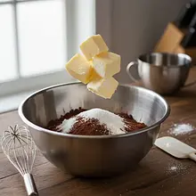 Wyjmij z lodówki 50g bardzo zimnego masła. Pokrój je w małą kostkę (ok. 1x1 cm) i dodaj do suchych składników. Teraz najważniejsza część: opuszkami palców szybko rozcieraj masło z mąką, cukrem i kakao. Wykonuj ruchy, jakbyś chciał 'uszczypnąć' składniki. Rób to do momentu, aż powstaną małe, wilgotne grudki, a całość będzie przypominać mokry piasek. Jeśli chcesz, możesz dodać 30g posiekanych orzechów włoskich.